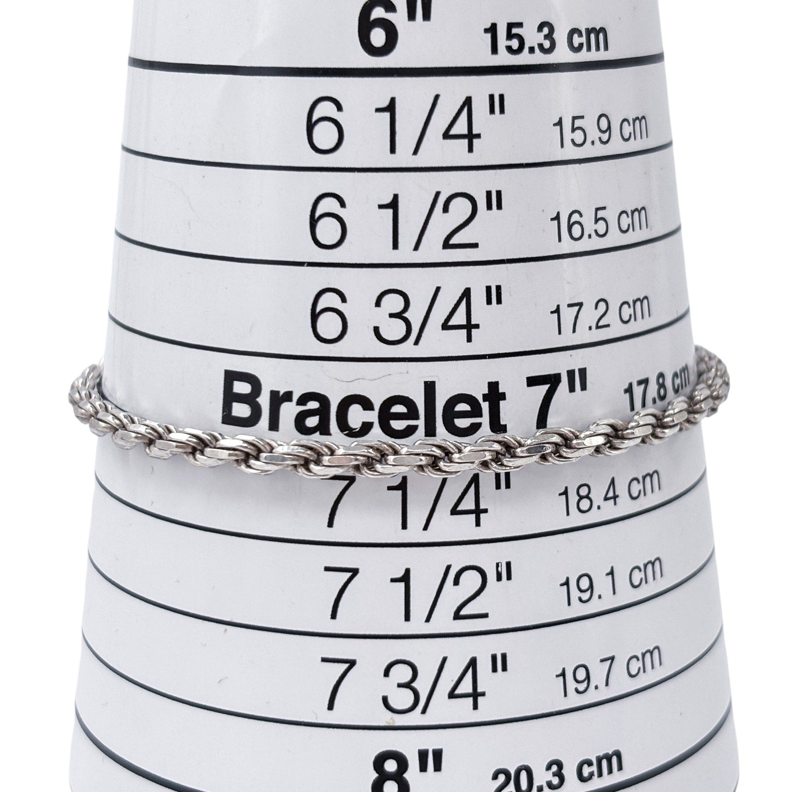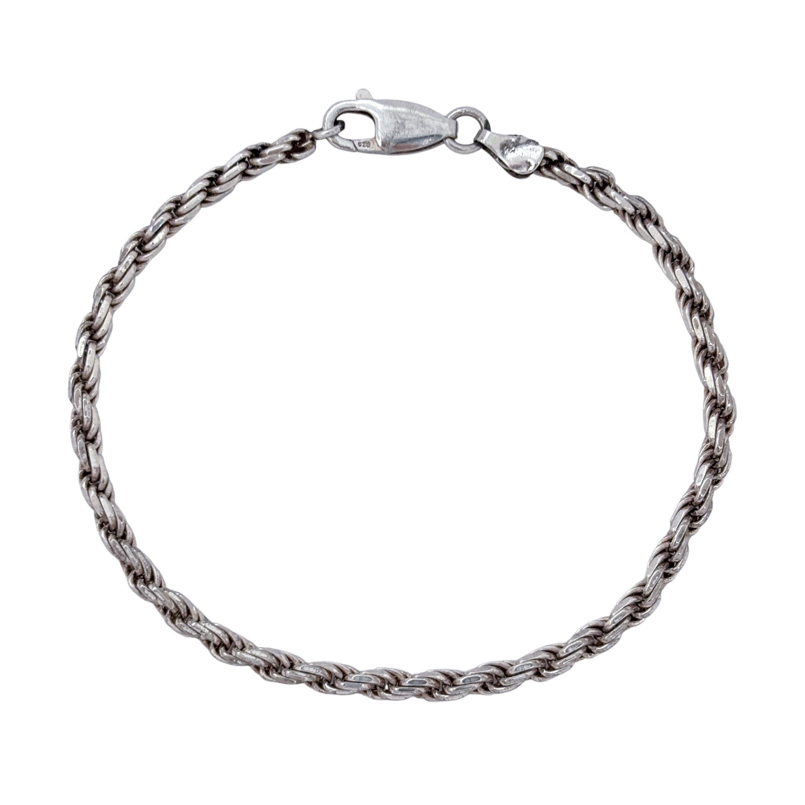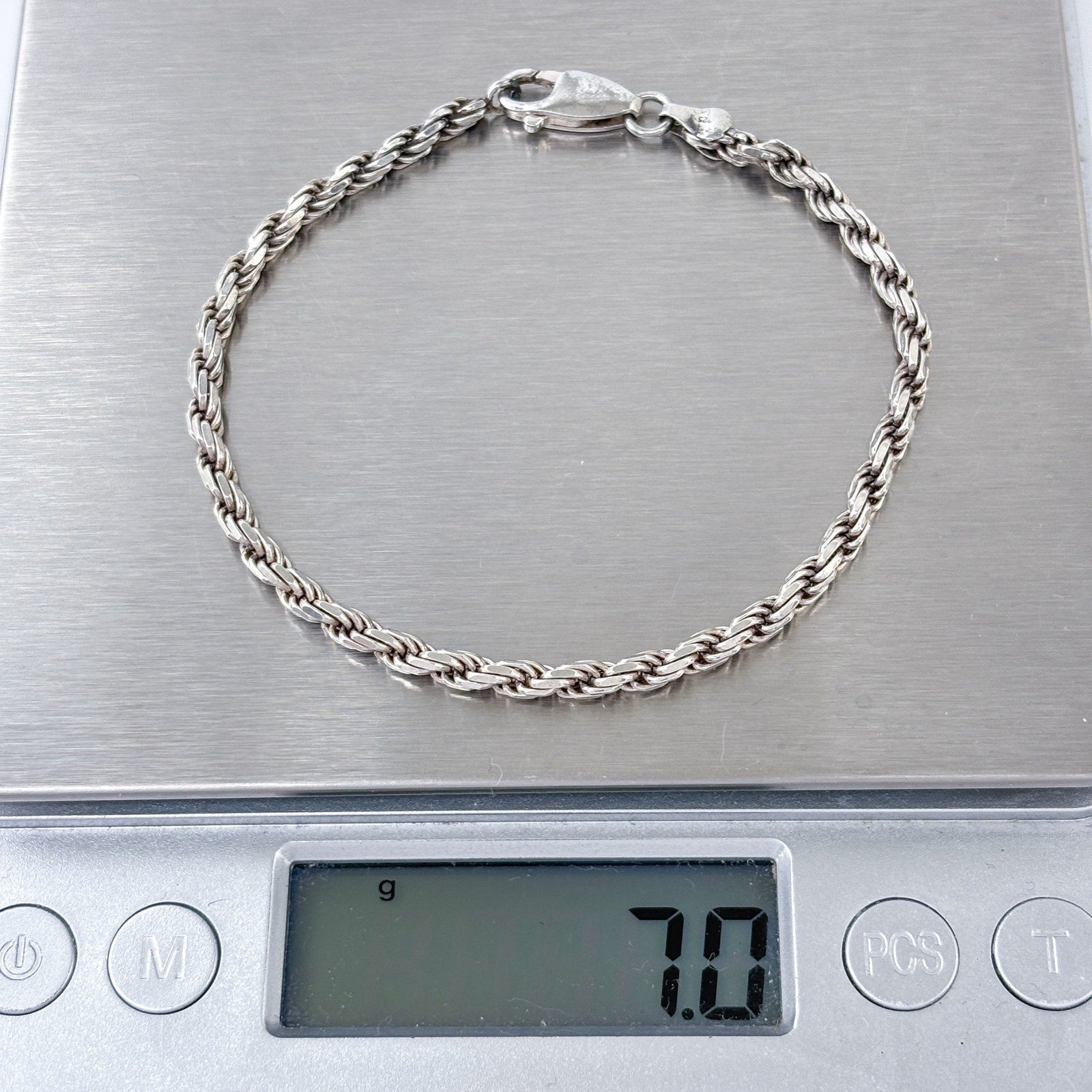 Estate Italy Sterling Silver 925 3mm Rope Chain Bracelet 7.5” | Italian Silver
